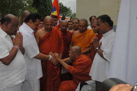 President Mahinda Rajapaksa and Ven. Maharagama Dhammasiri |
