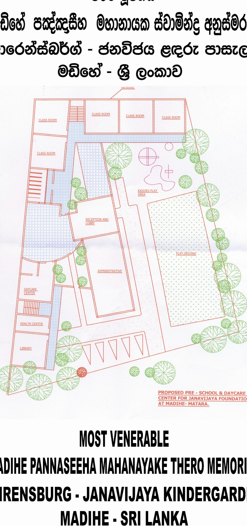 In memory of most ven. Midihe Pannasiha Maha Nayake Thero, the founder of the Washington Buddhist Vihara, Janavijaya Foundation bought this 69 perches land with a large house of five bed rooms for the Kindergarten in Madihe, Matara, Sri Lanka. The original value of this property was US$ 80,000. But Mr. Tillakewardena the owner of the land agreed to sell it for our US$ 45,000 for our noble task. |