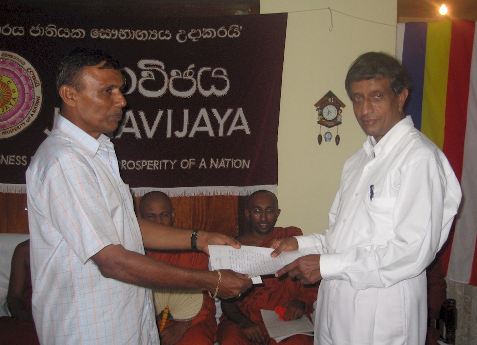 Handing over the Dead of the land to Specialist Dr. D.V.J.Harishchandra a founder member of the Janavijaya Foundation |