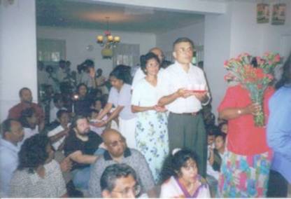 Following the Sri Lankan Buddhist customs a memorial service to transfer merit to our founder, Most Venerable Madihe Pannasiha Mahanayake Thero by offering DANA to the Sangha  was organized on December 14th 2003.  Sri Lanka Ranga Kala Kavaya and the Buddhist Vihara Society together organized this  noble event to pay our respect and gratitude to the late-grand master of Buddhist order of Sangha who rendered a great service for the perpetuation of  the teachings of the Buddha. A brief sketch of the biography of the late Mahanayake Thero was distributed during the ceremony.